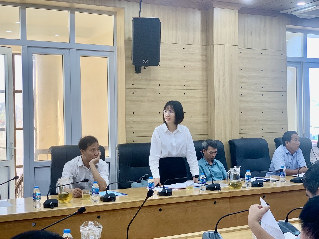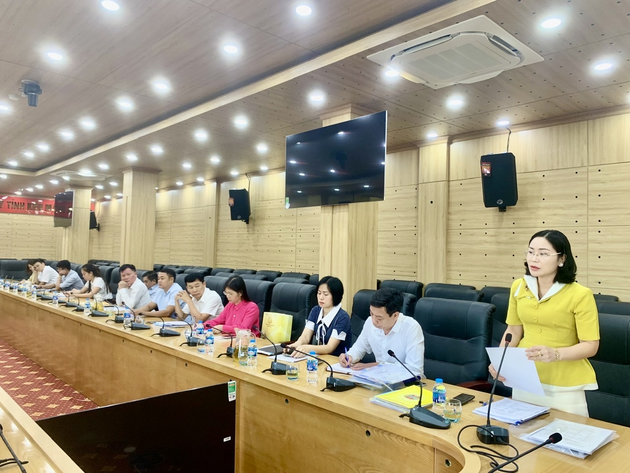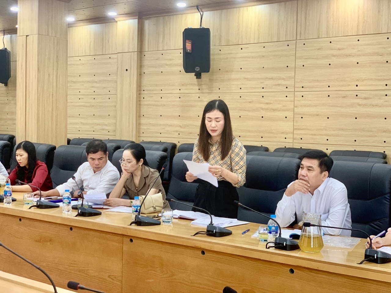 Đồng chí Vũ Thị Thanh Xuân, Ủy viên Ban Thường vụ Hội Nông dân tỉnh, Phó Trưởng ban Thường trực Ban công tác Nông dân trình bày báo cáo thẩm định duyệt Văn kiện Đại hội các đơn vị.